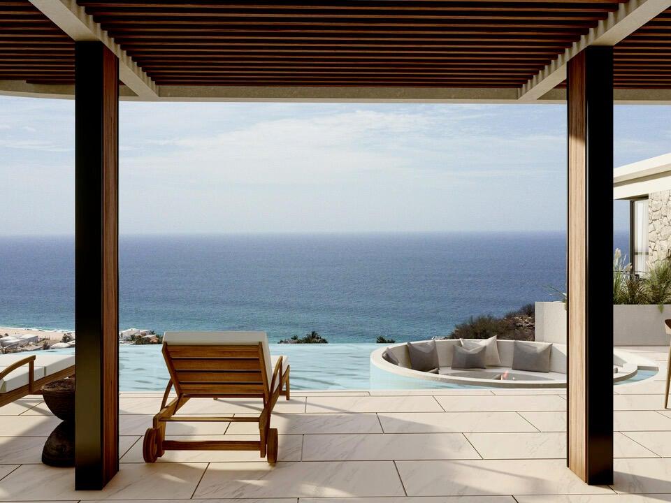 Casa Piedra Sol is an extraordinary nearly completed ocean view residence where modern luxury harmonizes with the natural elements of Baja. Scheduled for completion by end of year, this five-bedroom, four-and-a-half-bathroom home sits on one of the highest points of the ocean-side guarded and gated community of Laguna Hills, providing exceptional privacy and sweeping views of the Cape's unspoiled coastline and spectacular sunrises over Punta Gorda.