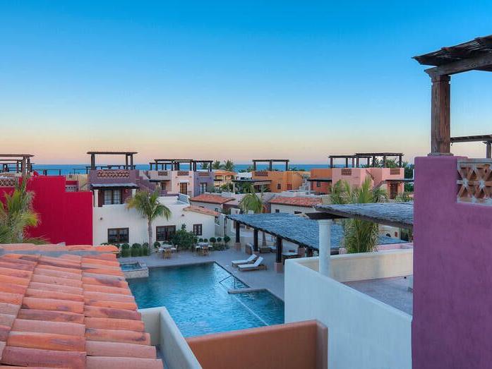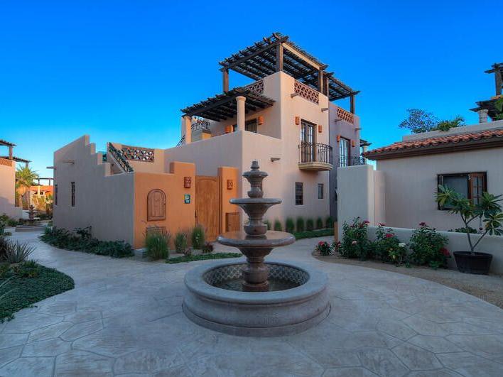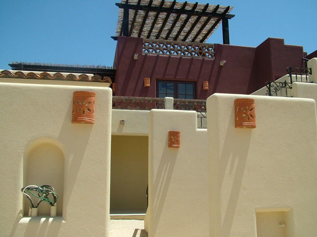 All 16x16 Travertine Flooring. Cantera patios with pergolas on each level.