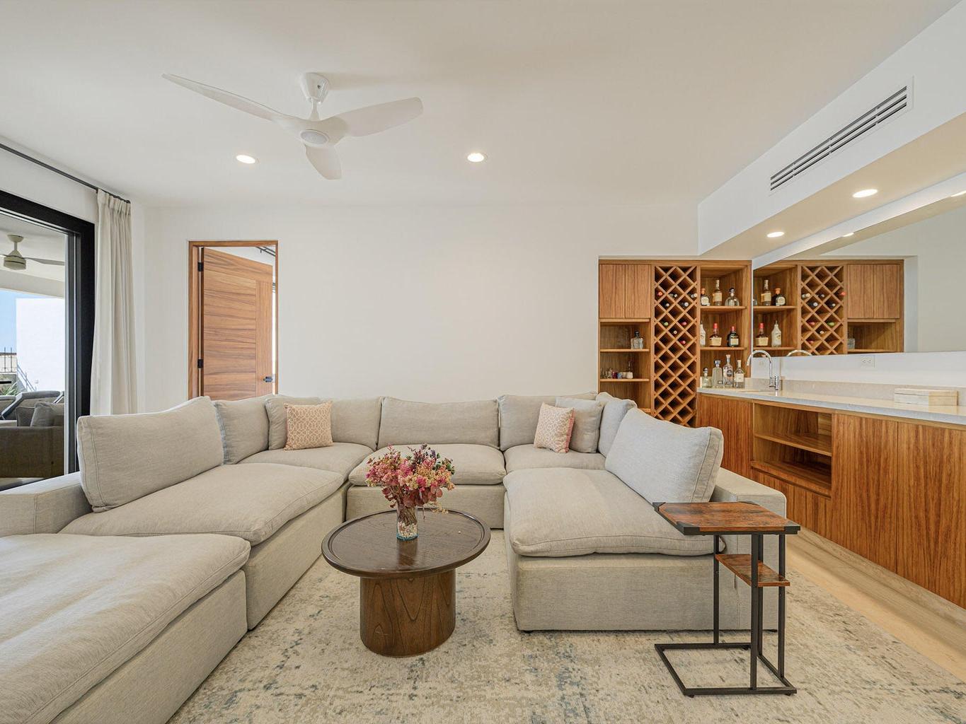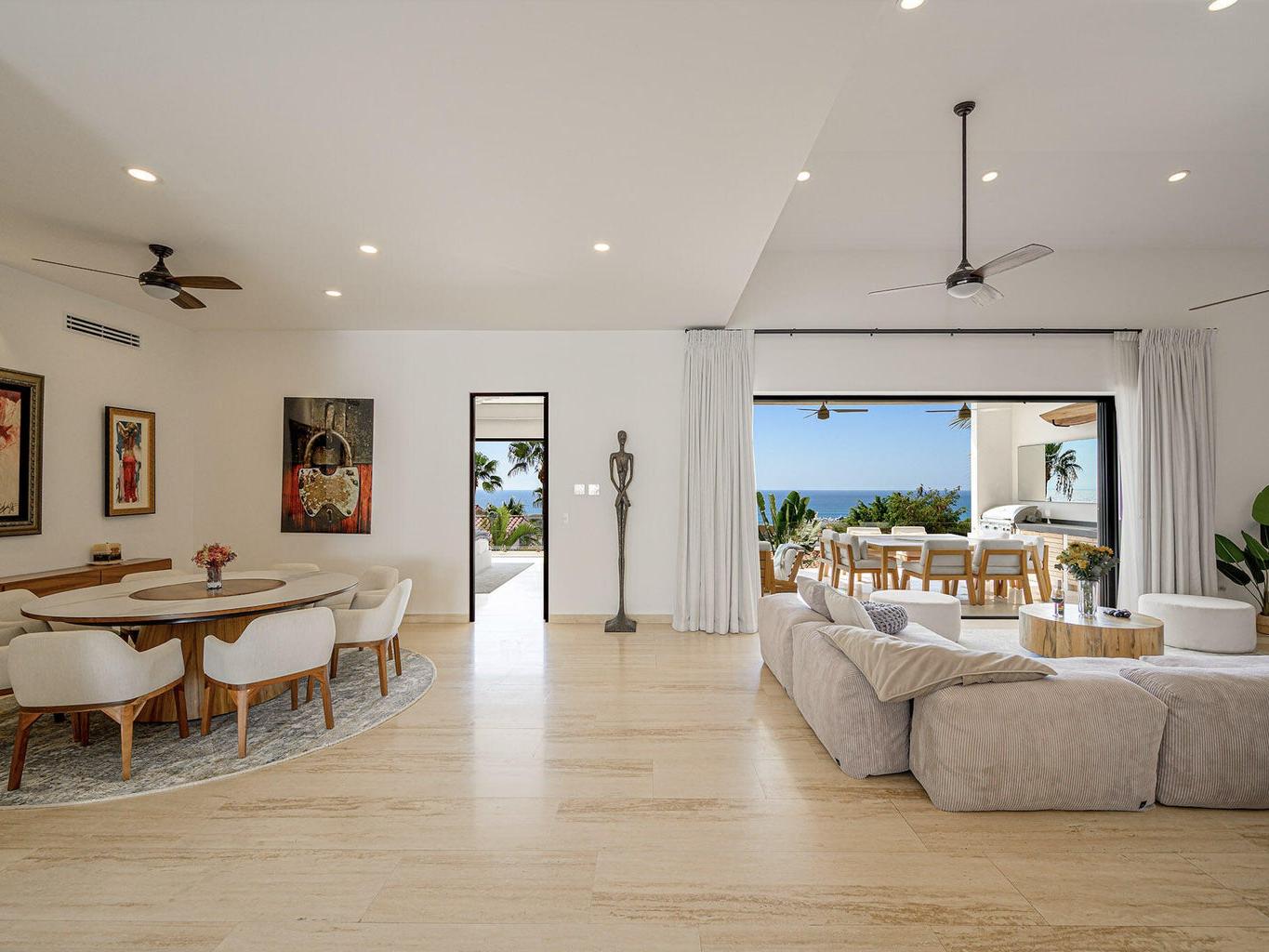 Welcome to your turnkey residence in the prestigious gated community of La Jolla. This home offers ocean views that will take your breath away. This exceptional four bedroom, five full and one half bathroom home blends modern luxury, comfort, and smart design in every detail. Each bedroom features its own en-suite bath, with an additional half bath on the main level and a full outdoor bath with a shower for when you're enjoying the pool and outdoor amenities. Expansive open-concept living and dining spaces are perfect for entertaining. The lower level living room offers a built-in bar with wine storage, sink, and a beverage cooler.