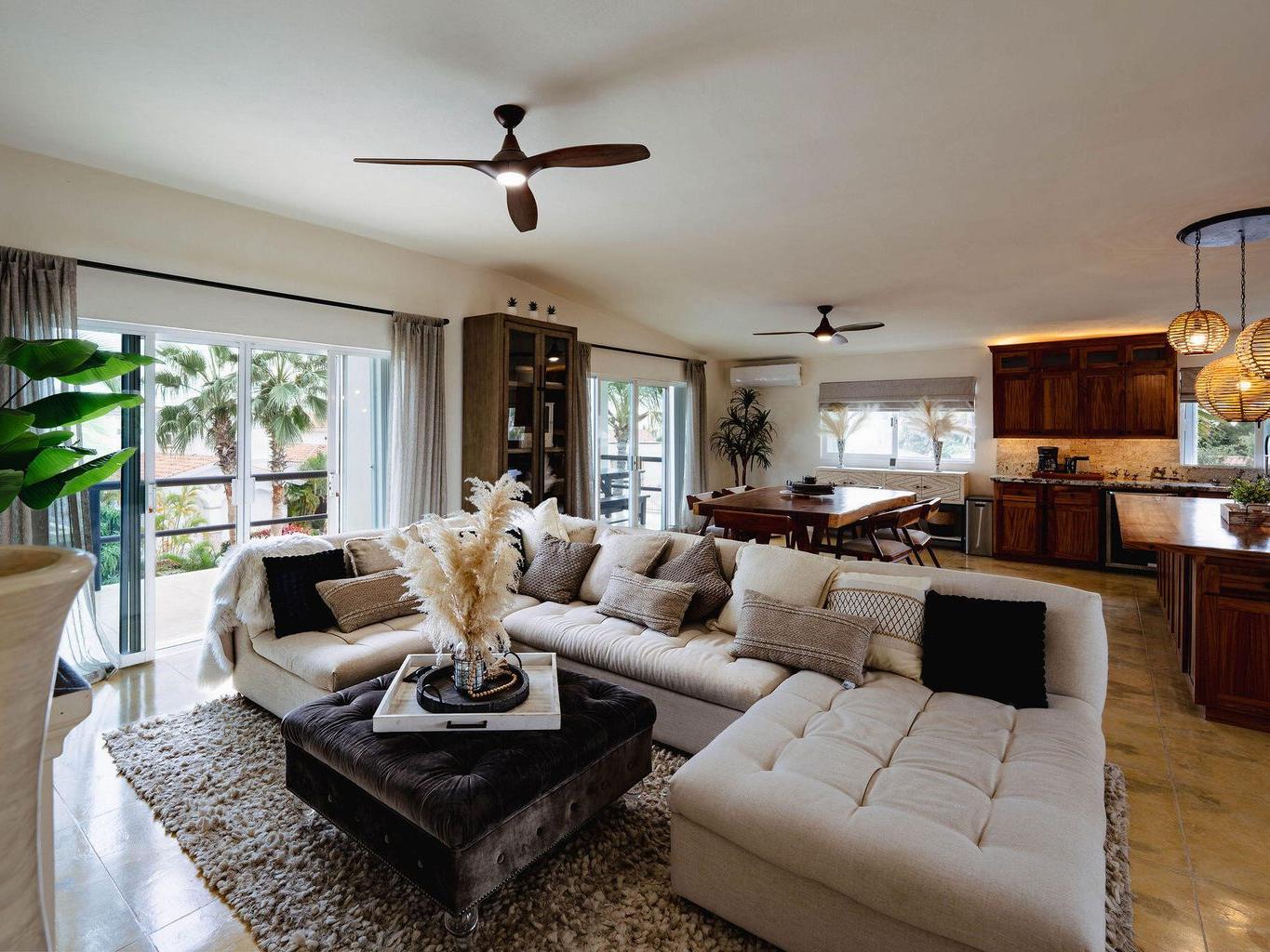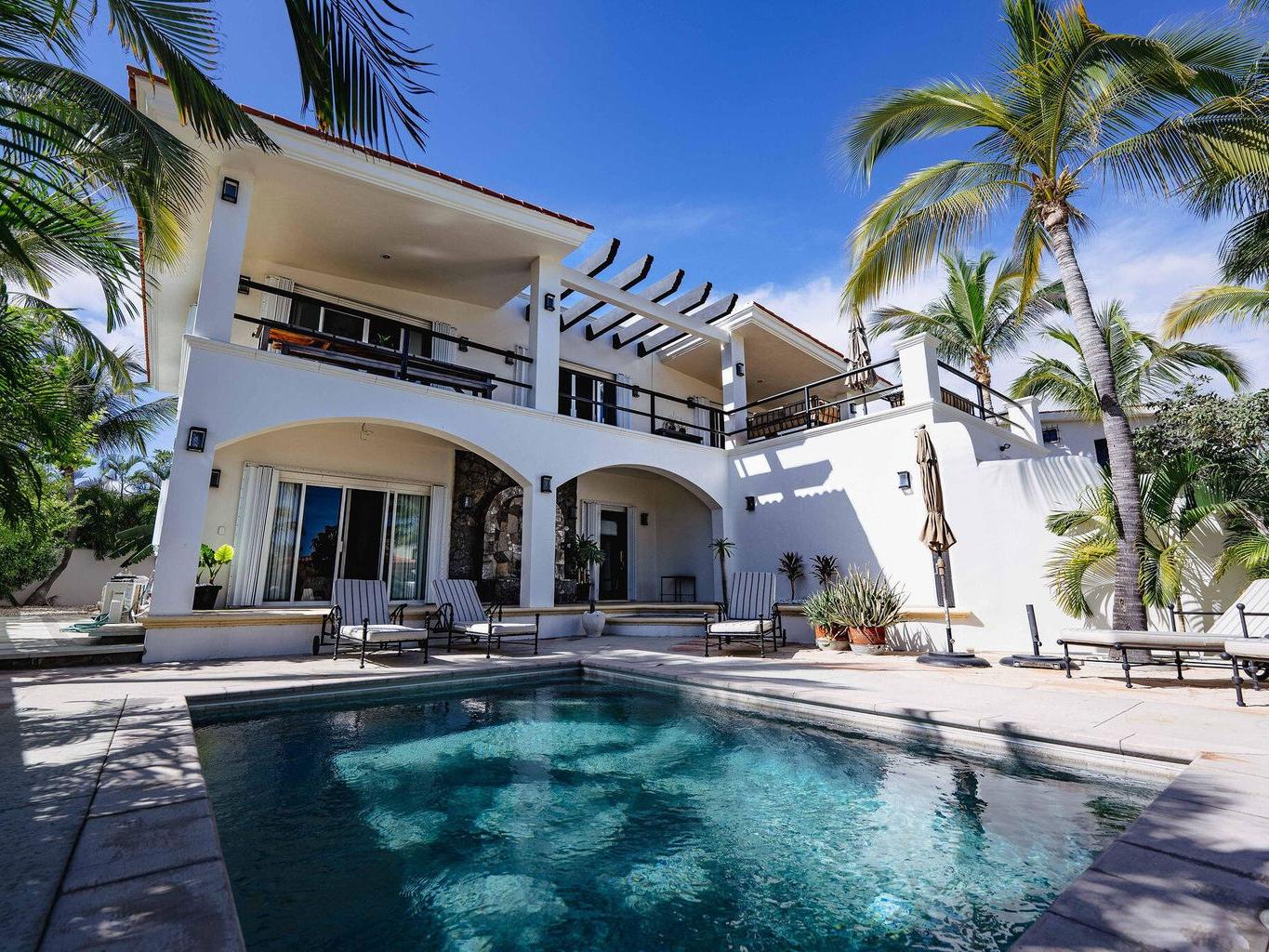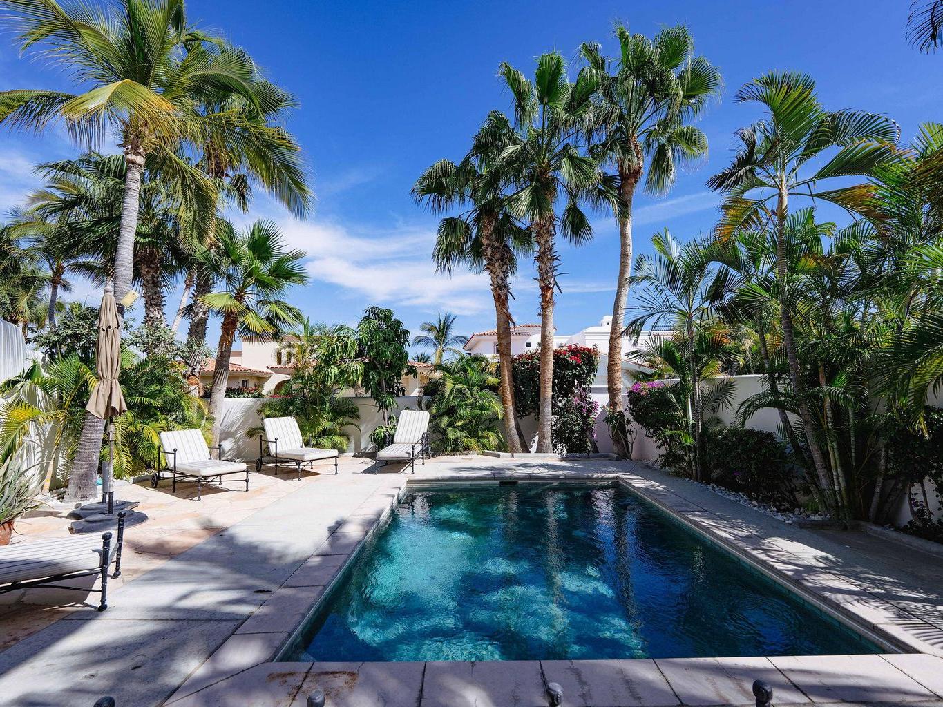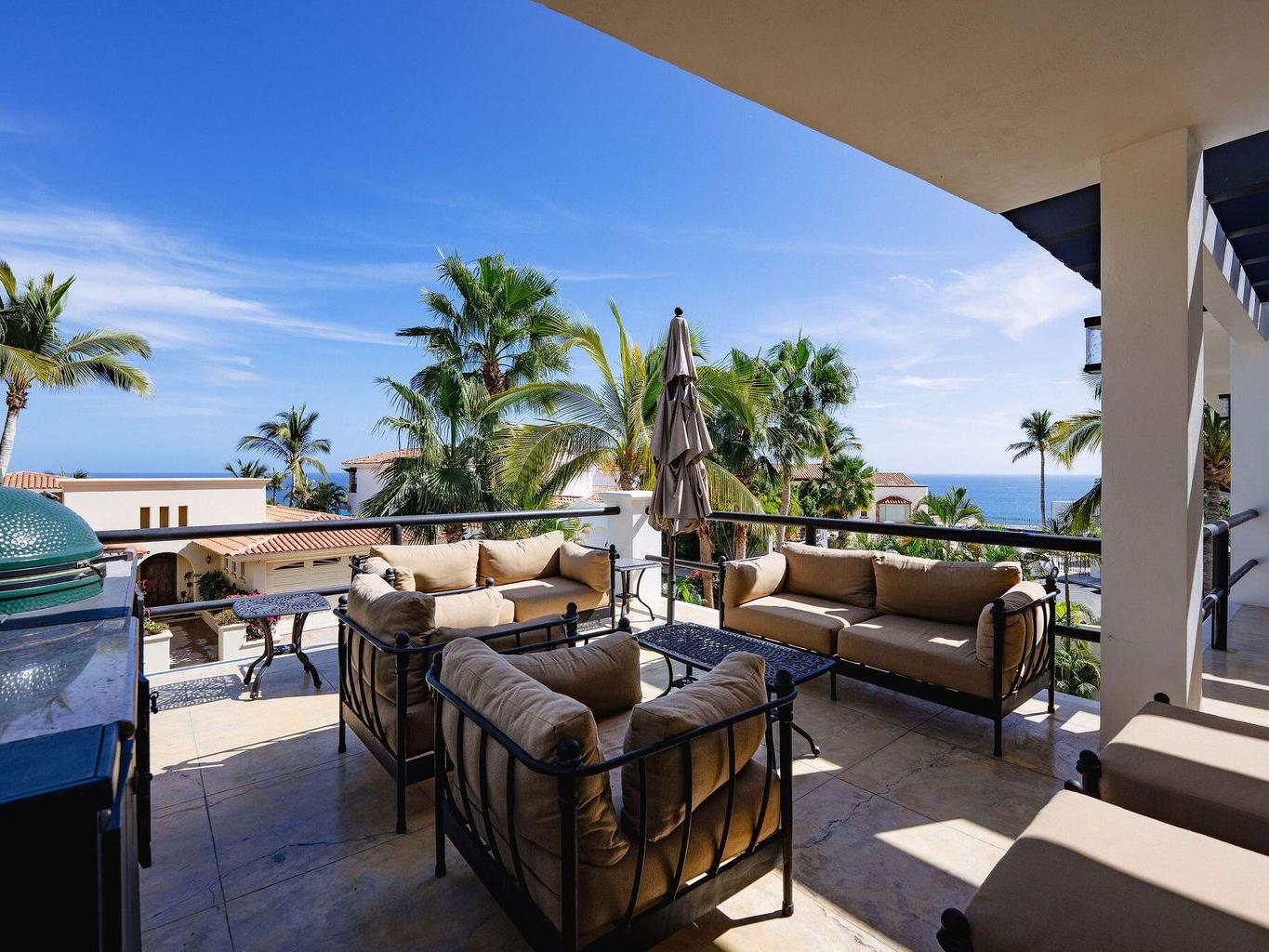 Incredible designer home in the highly sought after gated La Jolla Residences, just outside the San José del Cabo hotel zone. This California vibe residence offers 3 bedrooms and 3.5 bathrooms with massive ensuite bedrooms and an open concept living and kitchen area ideal for entertaining. Fully renovated with all new cabinetry, a custom kitchen, chefs' gas range, custom bathroom vanities, and a stunning primary bath featuring a zen soaking area and standalone tub. Enjoy whole house water softener and filtration, ocean and Punta Gorda views from the balcony with built in Green Egg BBQ and lounge, plus a two-car garage, four additional parking spaces, and a heated pool! Magazine worthy and 100% turnkey. Just bring your bags and move into a flawless home designed for effortless Cabo living.