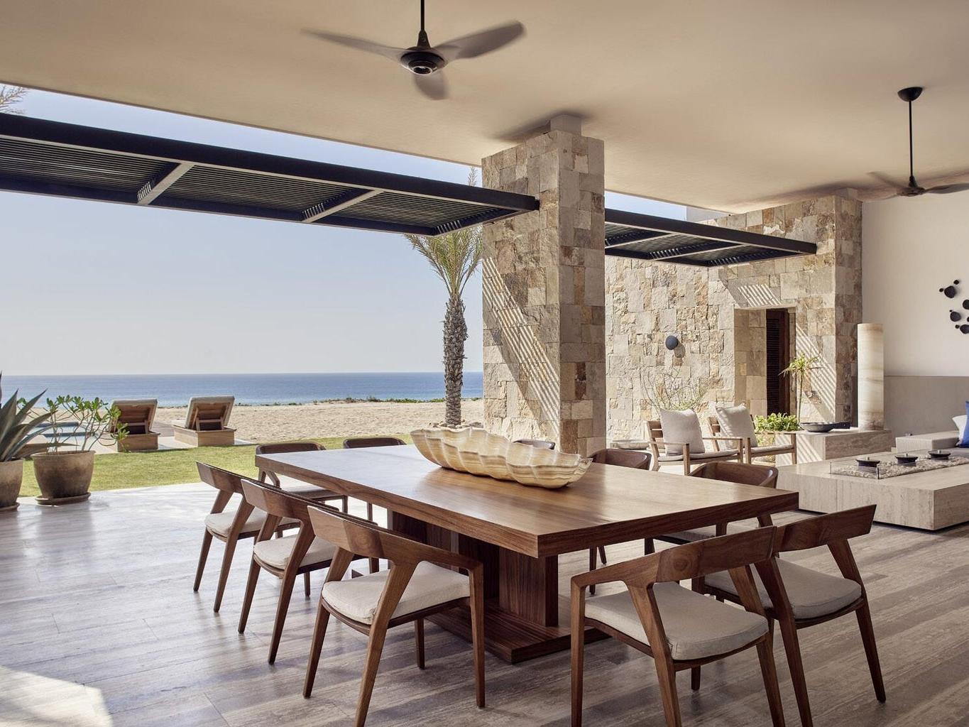 Experience the ultimate in beachfront living at the Grand Reserve Residence, located within Zadún, a Ritz-Carlton Reserve in Puerto Los Cabos. This exceptional two-story villa offers over 14,600 sq. ft. of interior space with five bedrooms, five full bathrooms, and two half baths. Thoughtfully designed by Uribe Krayer Arquitectos, the home blends modern architecture with natural materials, creating a seamless connection between indoor and outdoor living. Enjoy expansive ocean views, a private pool, open-air dining areas, a personal gym, and multiple terraces perfect for entertaining or relaxing in complete privacy. Owners enjoy access to the exclusive Puerto Los Cabos Club, including golf, beach clubs, and resort amenities.