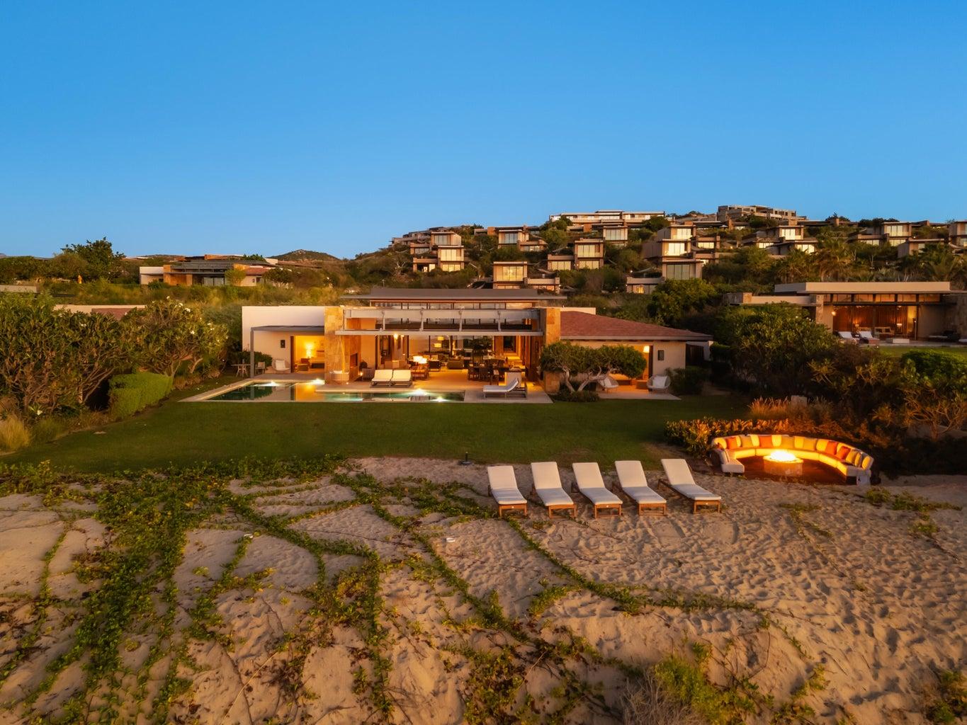 An extraordinary oceanfront residence in West Enclave - Ritz-Carlton Reserve, within the private community of Puerto Los Cabos, San José del Cabo. Designed by renowned architect Fernando de Haro, this ultra-luxury single-level villa offers panoramic Sea of Cortez views, direct beach access, and exceptional privacy. Featuring 6 bedrooms and 7.5 bathrooms, the residence blends indoor and outdoor living through expansive floor-to-ceiling glass. Highlights include a designer gourmet kitchen, refined natural finishes, heated pool, jacuzzi, panoramic terraces, and elegant social spaces. Ownership includes access to Ritz-Carlton Reserve services and Puerto Los Cabos amenities, including championship golf, beach club, marina, and racket center.