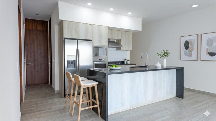 This impeccable residence is offered elegantly furnished, showcasing an open-concept design with three spacious bed...