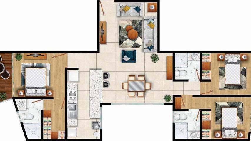 3-bedroom, 3-bathroom apartment, perfect for families. It has a laundry area and balconies, offering a spacious and...