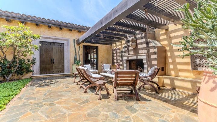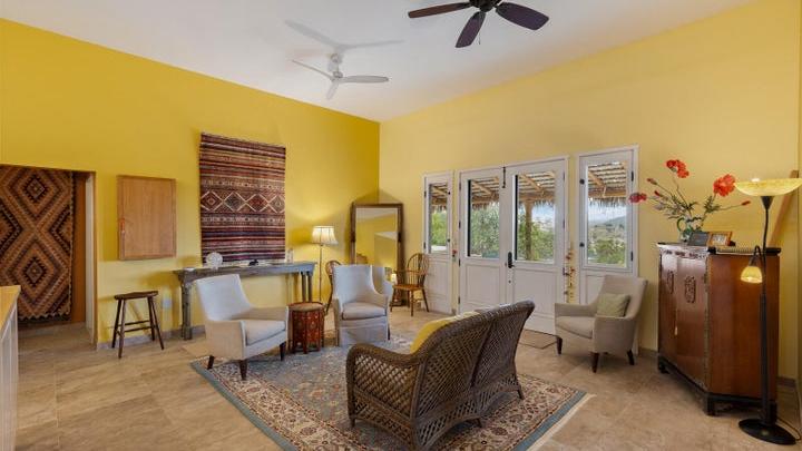 Casa La Torre offers stunning panoramic views of the palm grove, ocean, and Sierra La Laguna mountains from its pri...